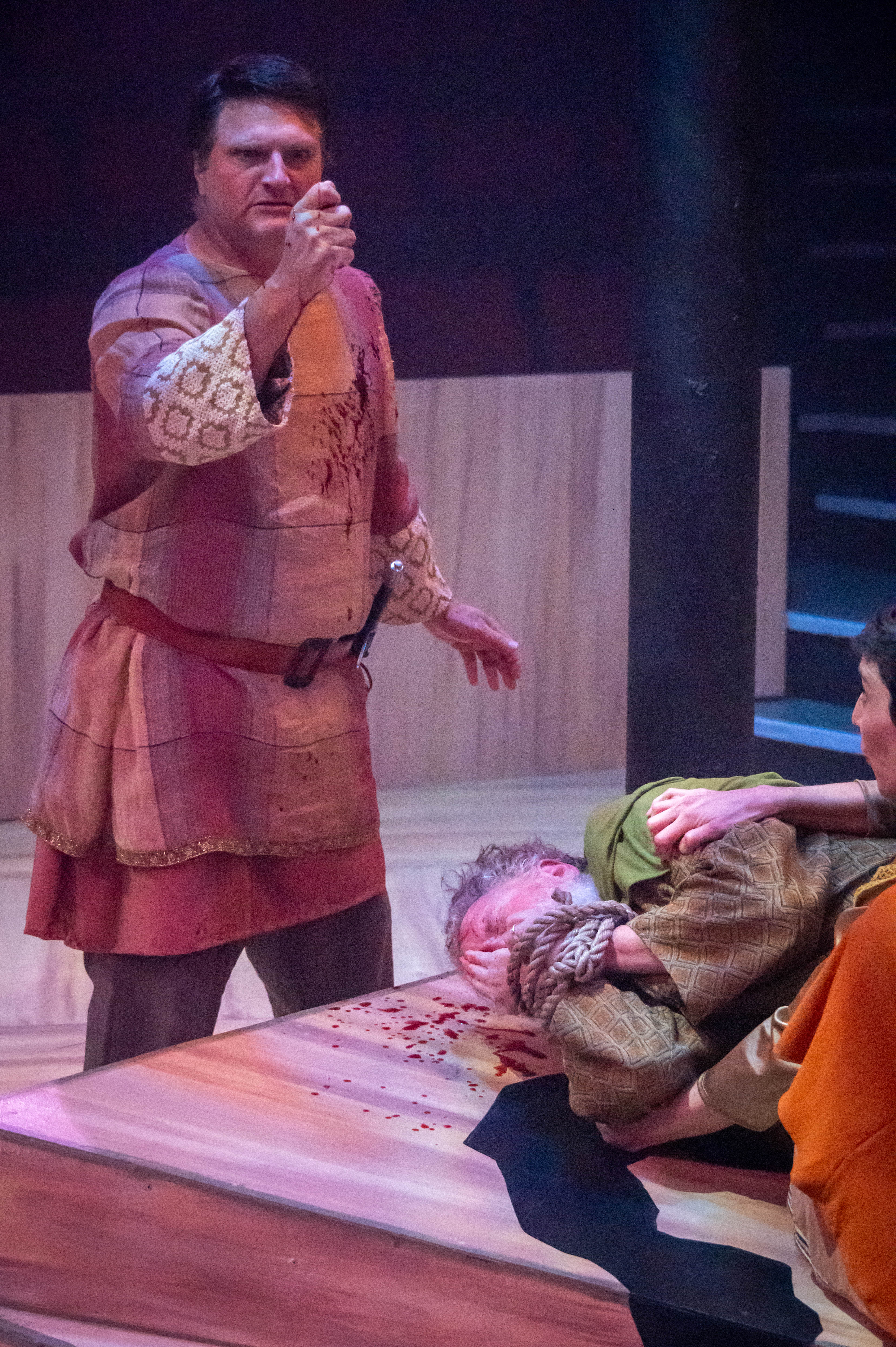 Meri Golden as King Lear, Deanne McDonald as Regan, David Denninger as Duke of Cornwall, Tim Perfect as Earl of Gloucester, Danny Vopava as Fool, Lucas Gerstner as Earl of Kent, Olivia Denninger as Cordelia. Photos by Aaron Mark Photo Film, Tom Taintor.